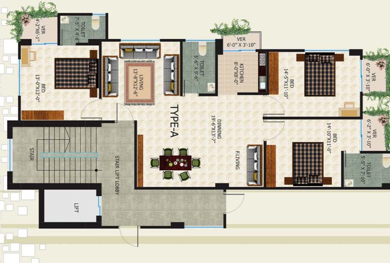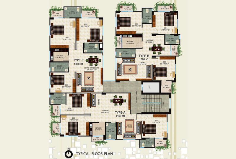 | Per Unit Size | Type A-1458 Sft, Type B-1386 Sft, & Type C-1328 Sft |