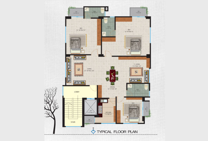 | Total Square Fit Area | Total 1635 Square Fit Area |