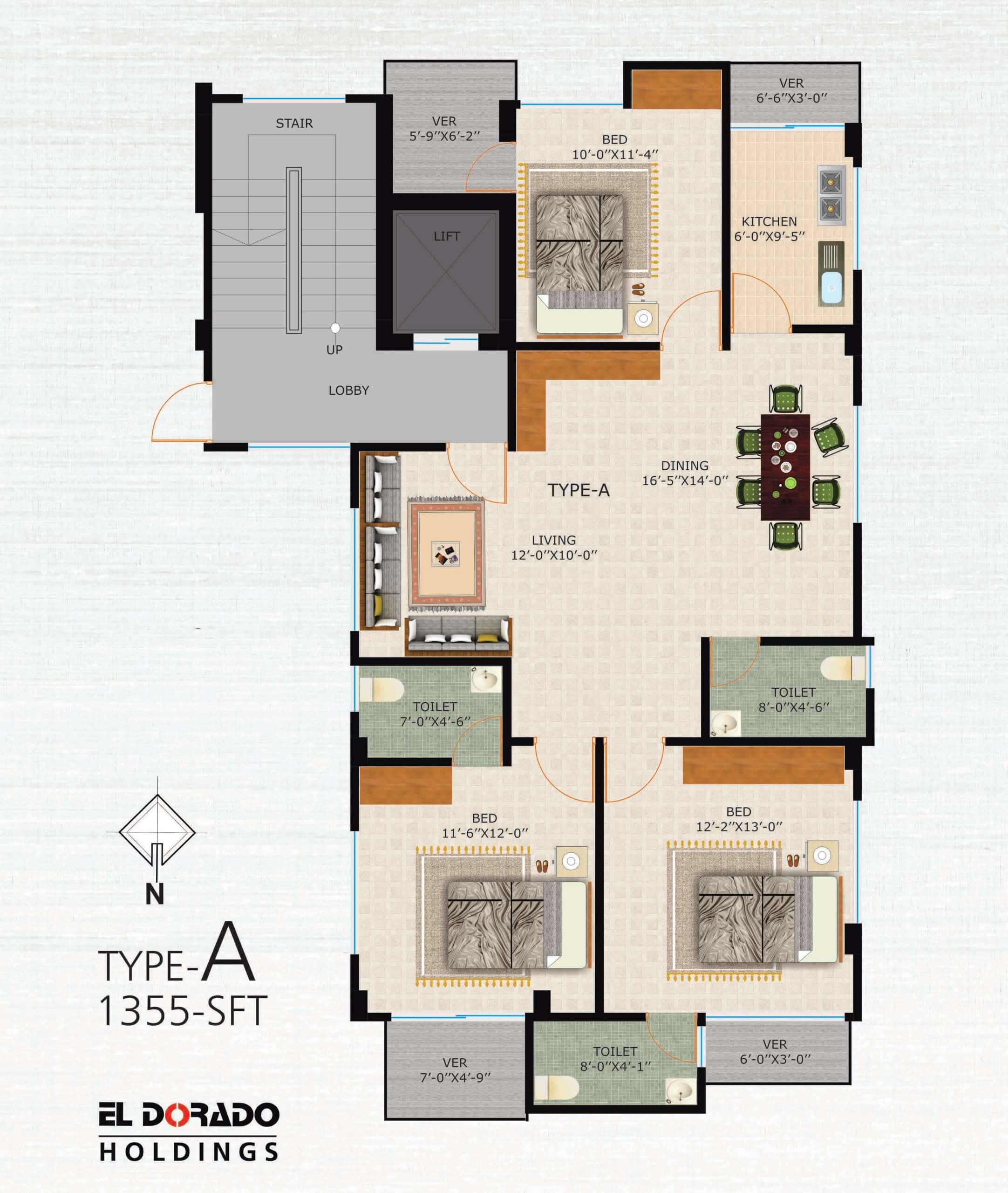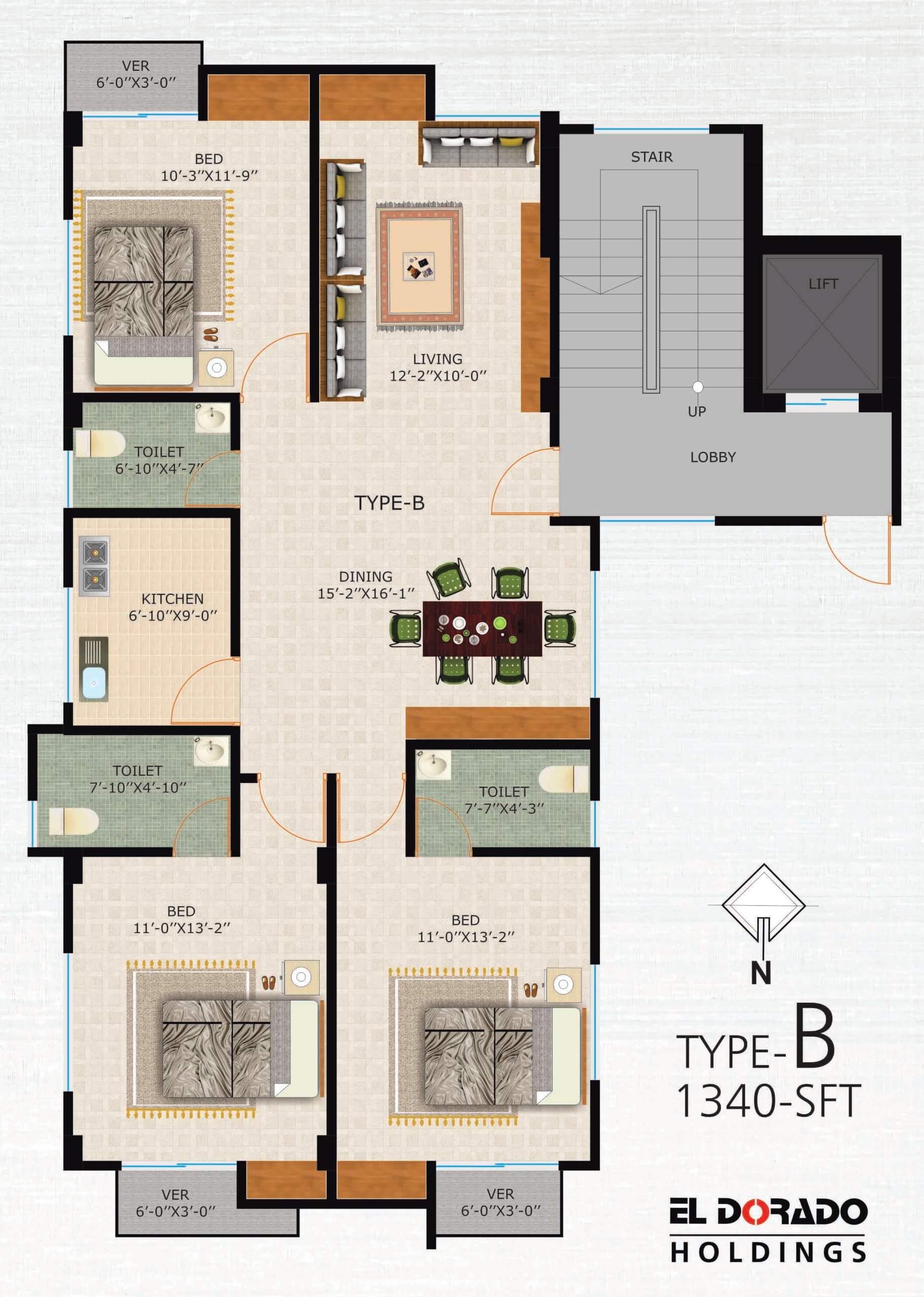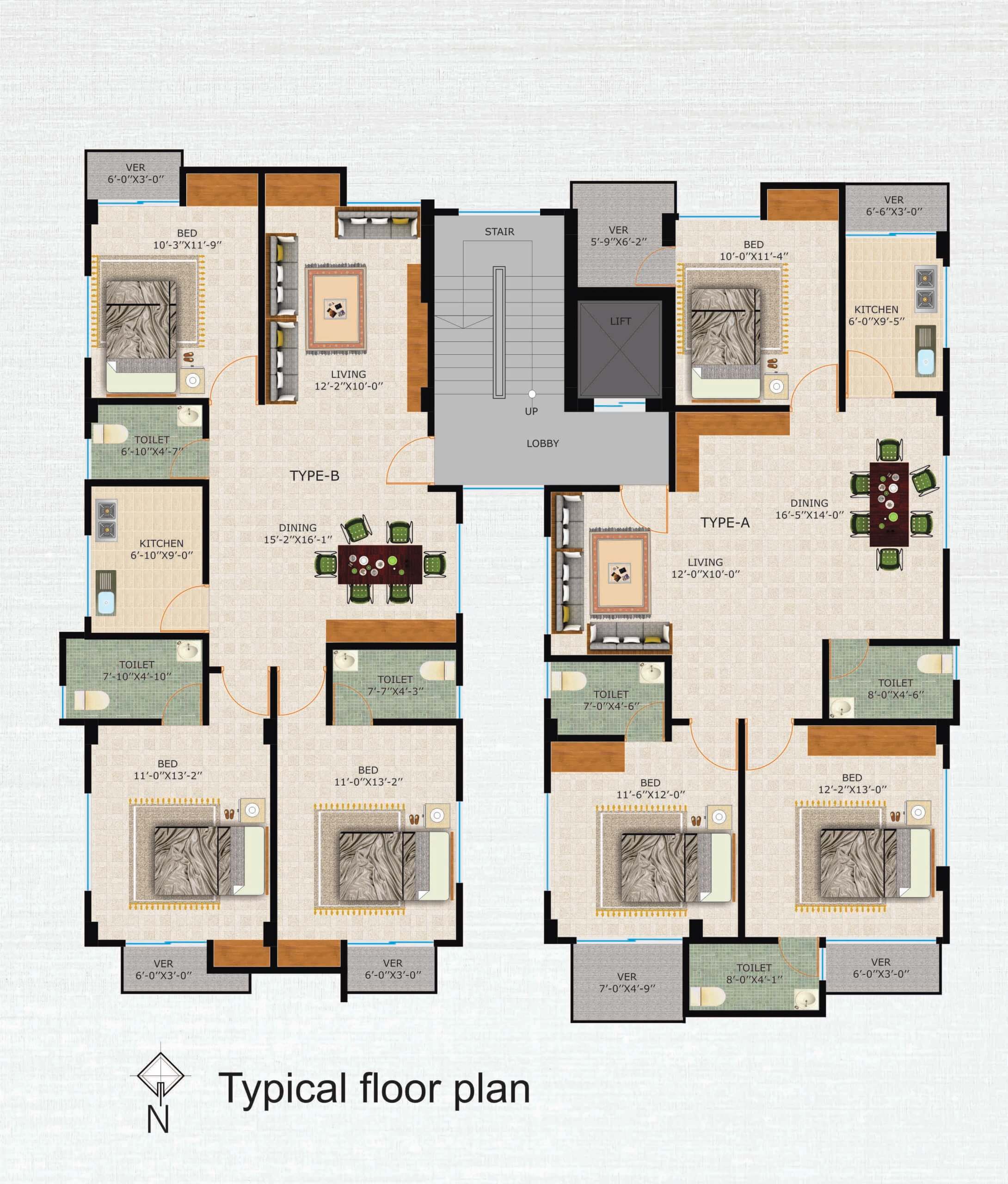 | Per Unit Size | Type A -1355sft Type B -1340sft |