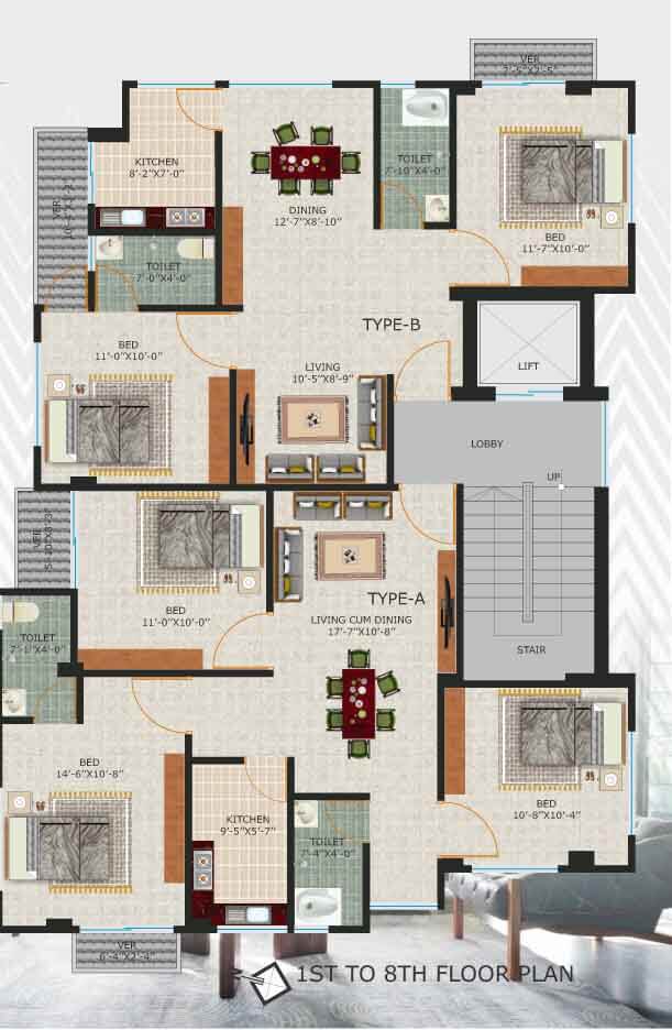 | Per Unit Size | Type A -1025 Sft, B-915 Sft |