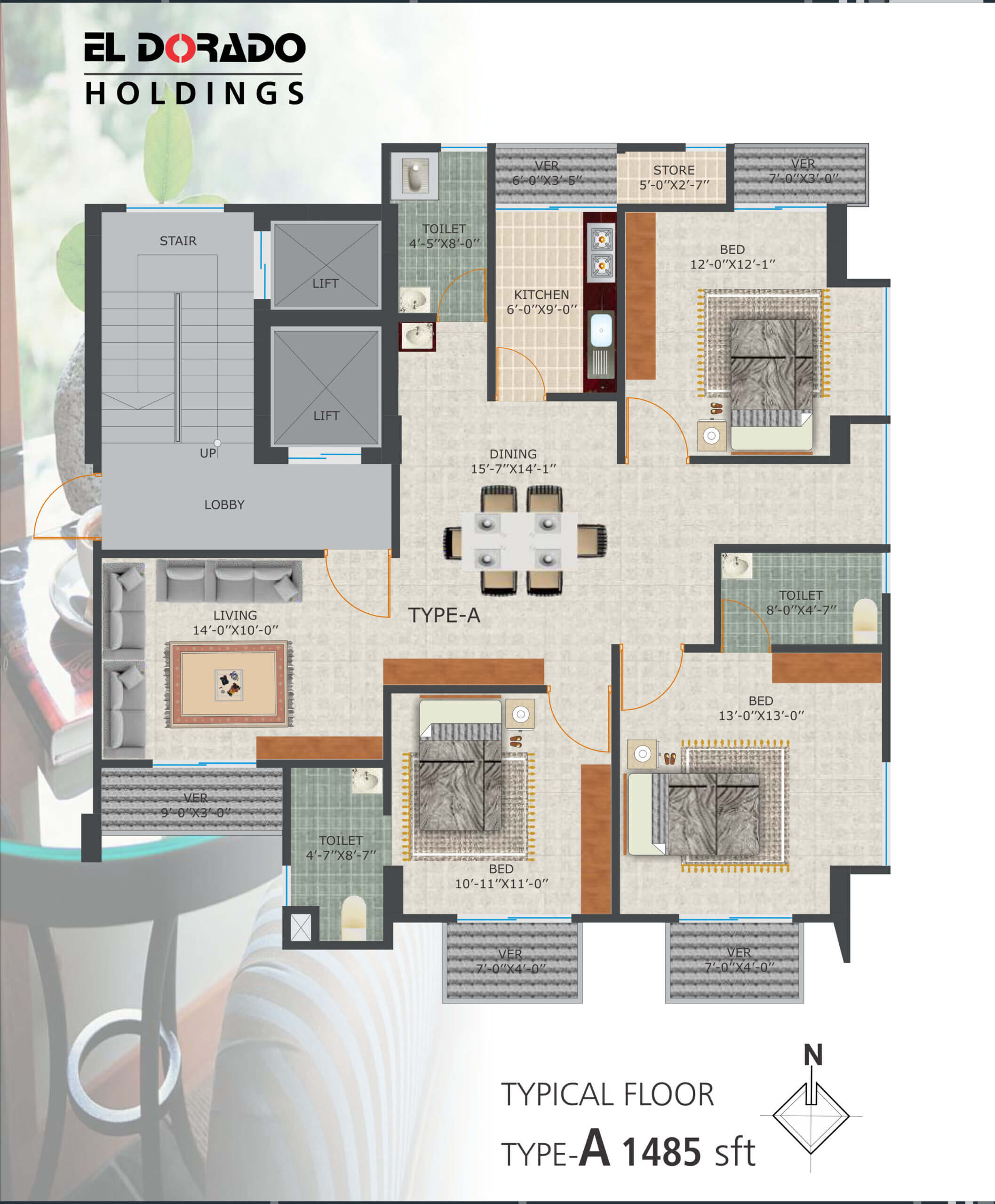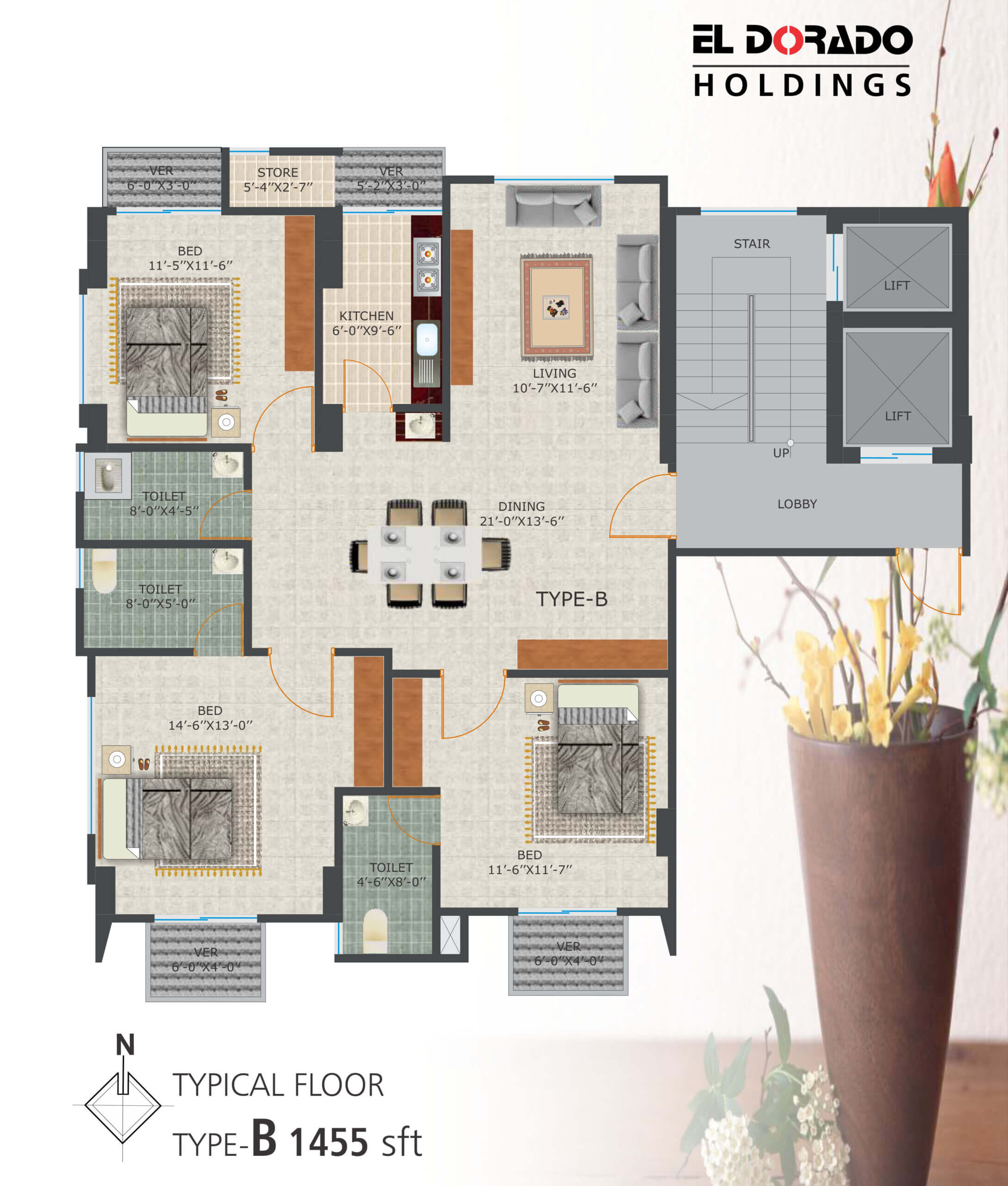 | Per Unit Size | Type-A:1485 sft. Type-B:1455 sft |