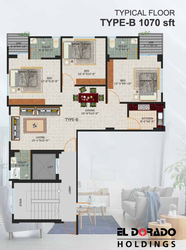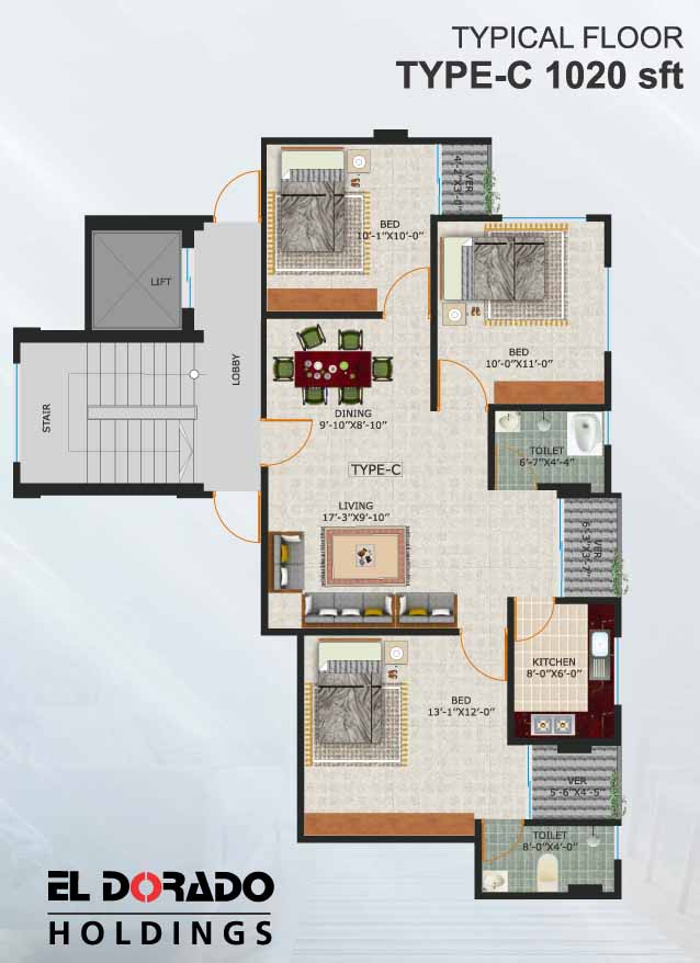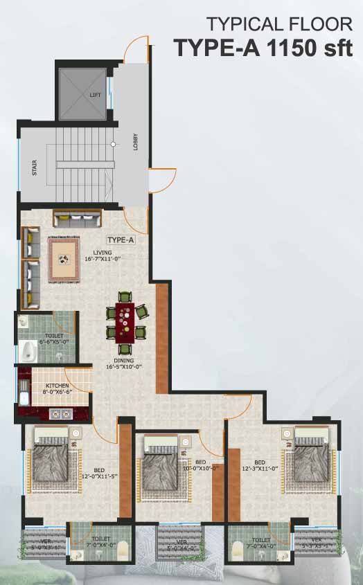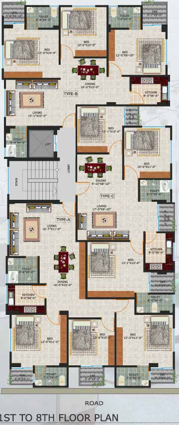 | Per Unit Size | Type A 1150 sft, B 1070 sft, C1020 sft |